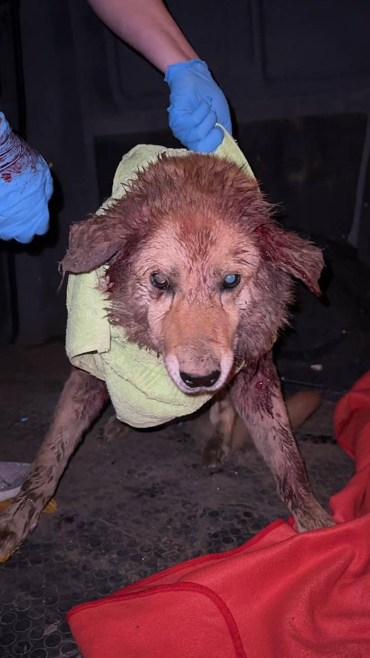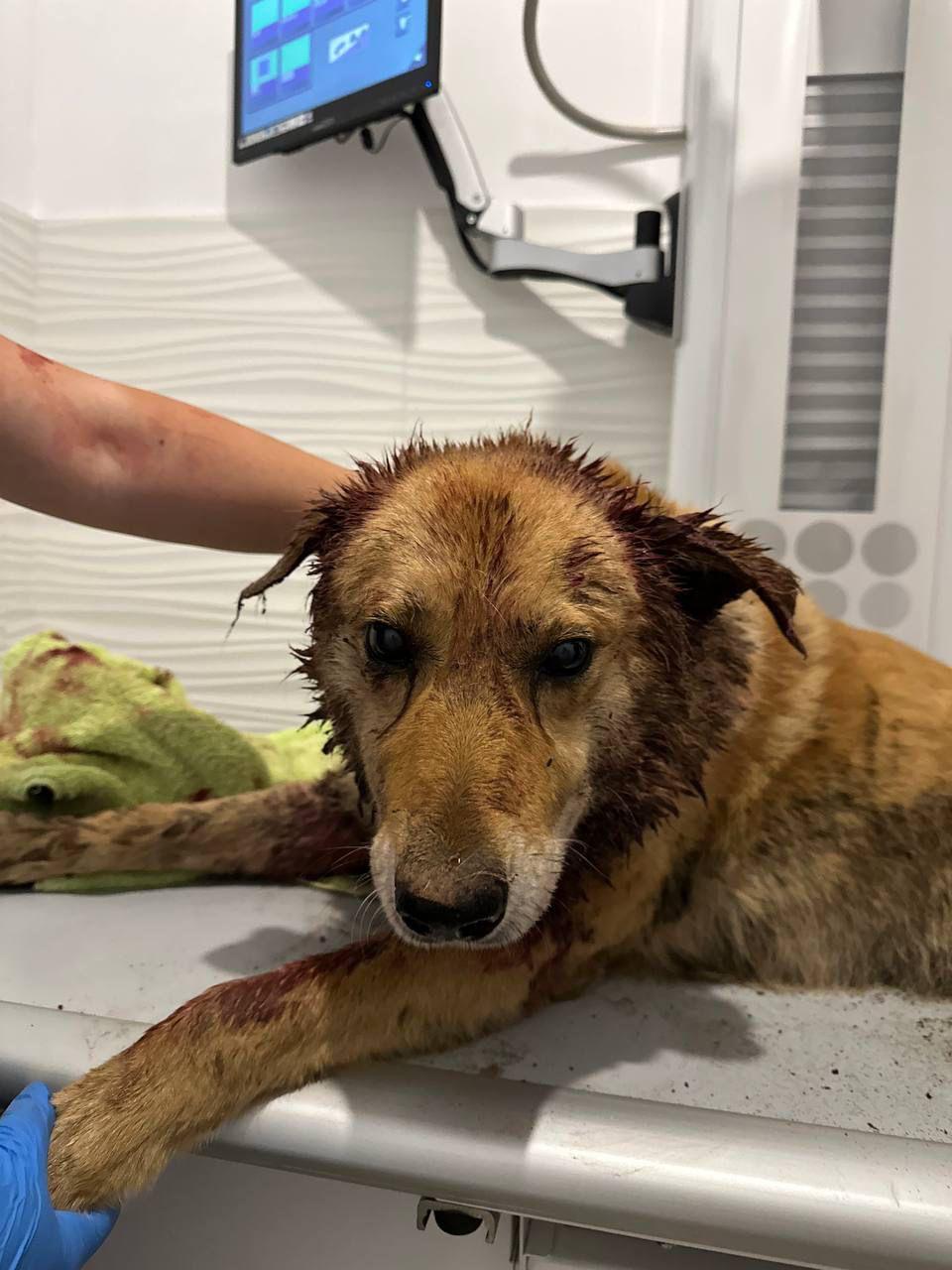 Na poboczu drogi, w świetle reflektorów, leżał pies, który ledwo oddychał, a jego futro było przesiąknięte krwią.