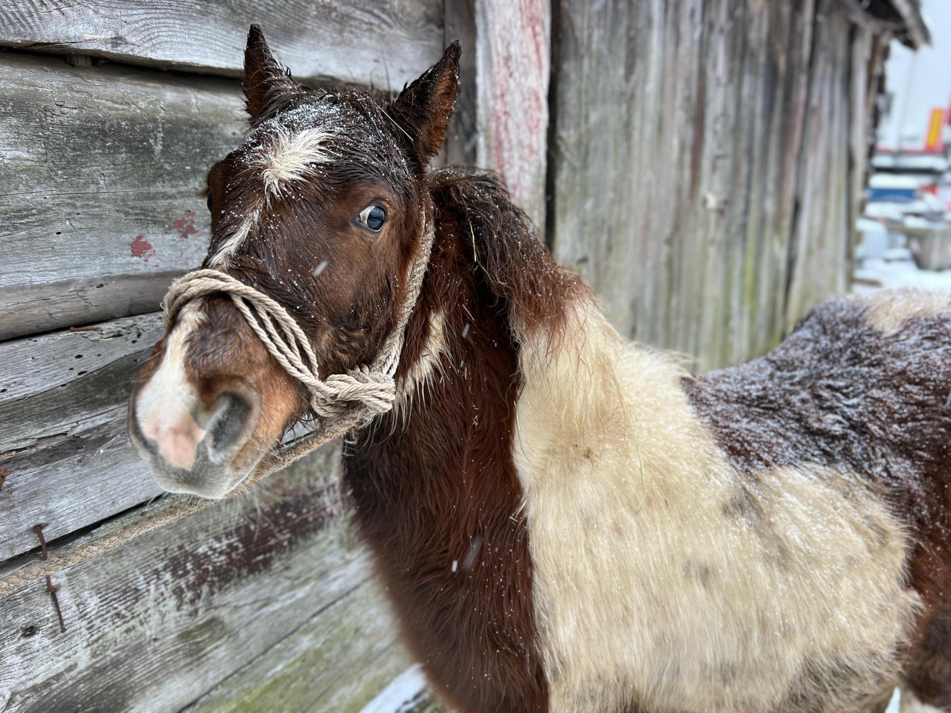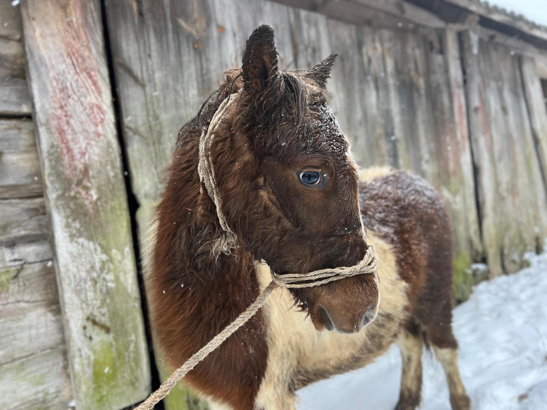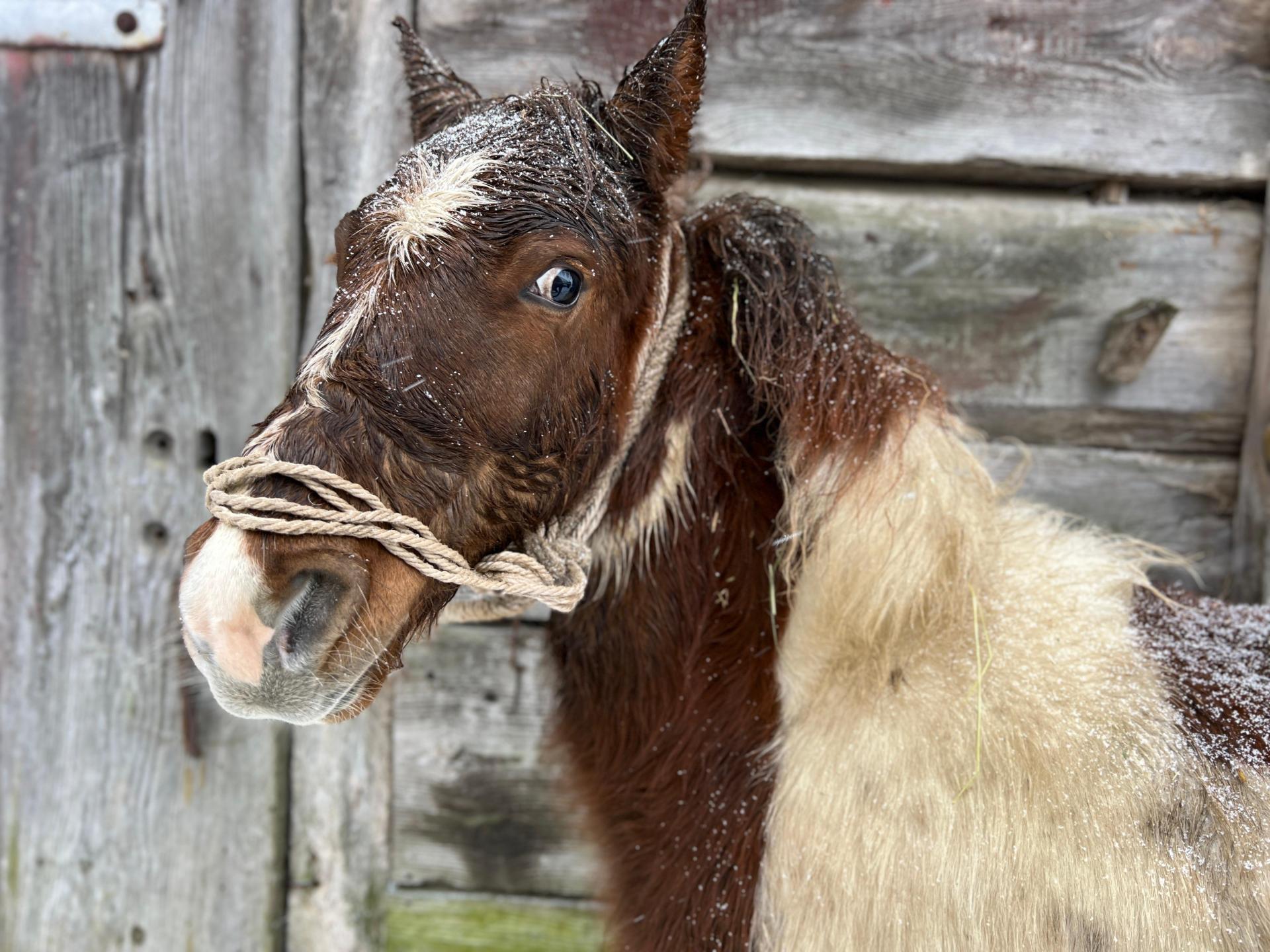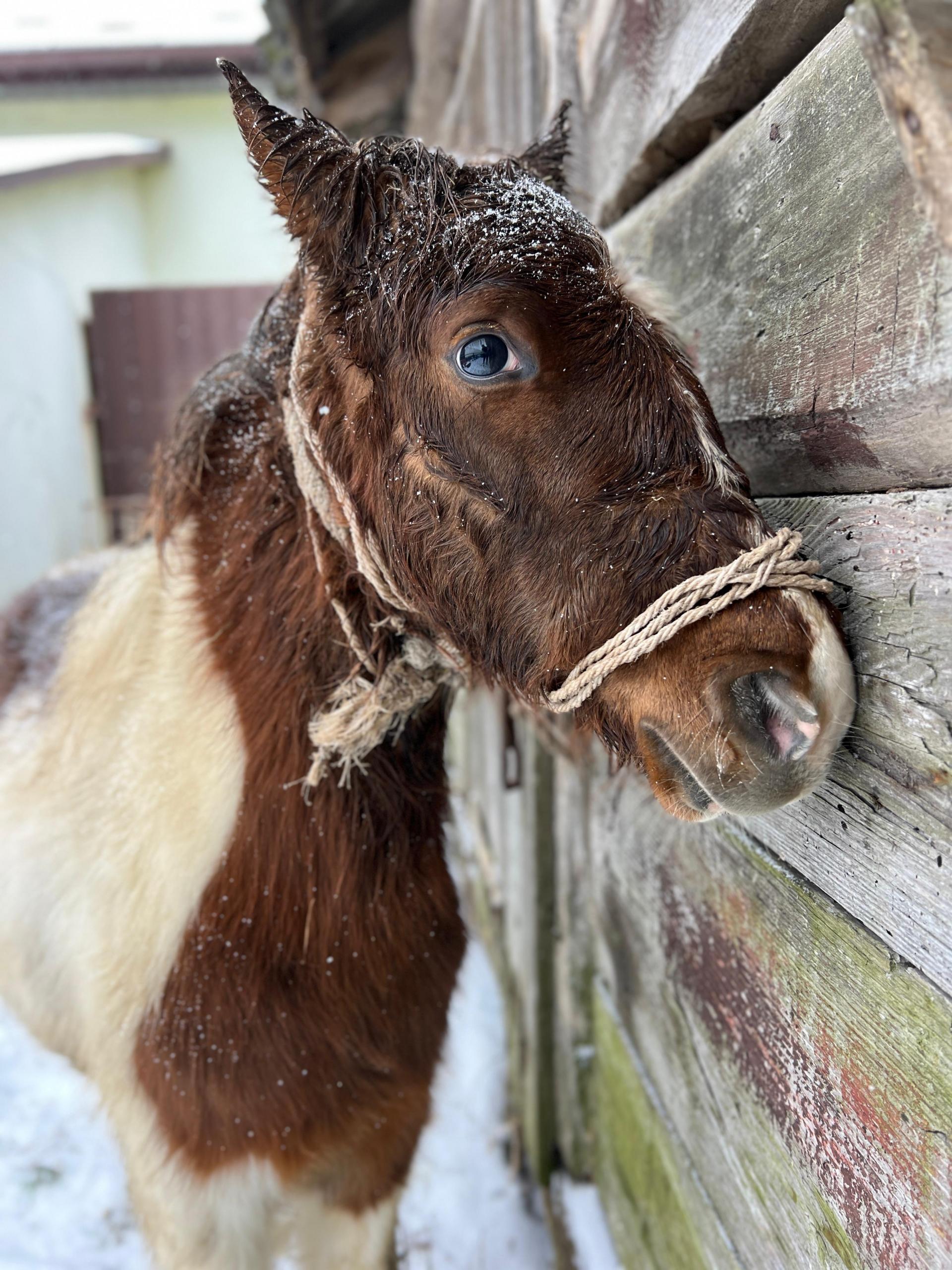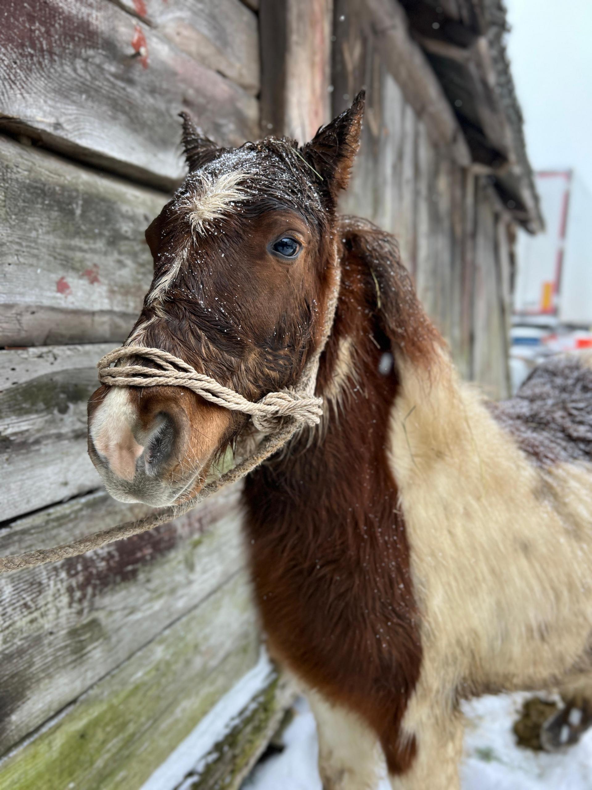 Emil zderzył się z historią z jaką zderzyło już kilkanaście naszych koni. Zawsze po takich wydarzeniach pozostajemy w szoku na kilka dni – ale pozwól, że Ci opowiem jak głupi byliśmy, nim poproszę byś nam tę głupotę wybaczył. Pan Stefan zadzwonił, żeby dać mi zdjęcia jakiegoś zimowego konia, najlepiej w śniegu, który czeka u handlarza na śmierć. To nie plebiscyt zdjęć i nie robimy ich pod zamówienie, ale stonowaliśmy emocje – w końcu to była szansa, a akurat mieliśmy Emila tonącego w śnieżnym puchu, który zasypał jego oborę i okoliczne pola.